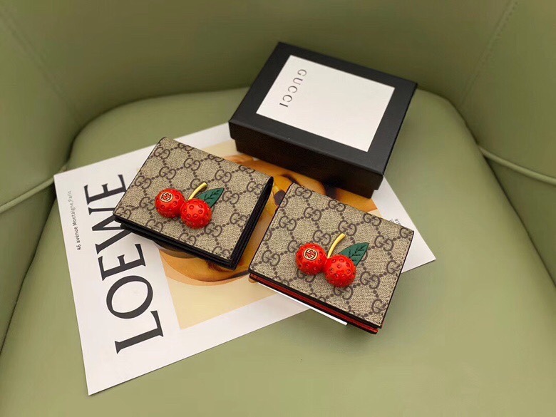 Gucci Supreme Canvas Card Case Wallet With Cherries Black Leather Inside 10Cm 476050