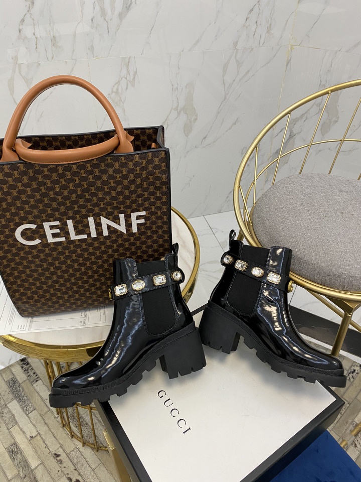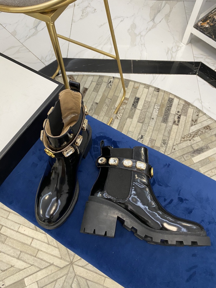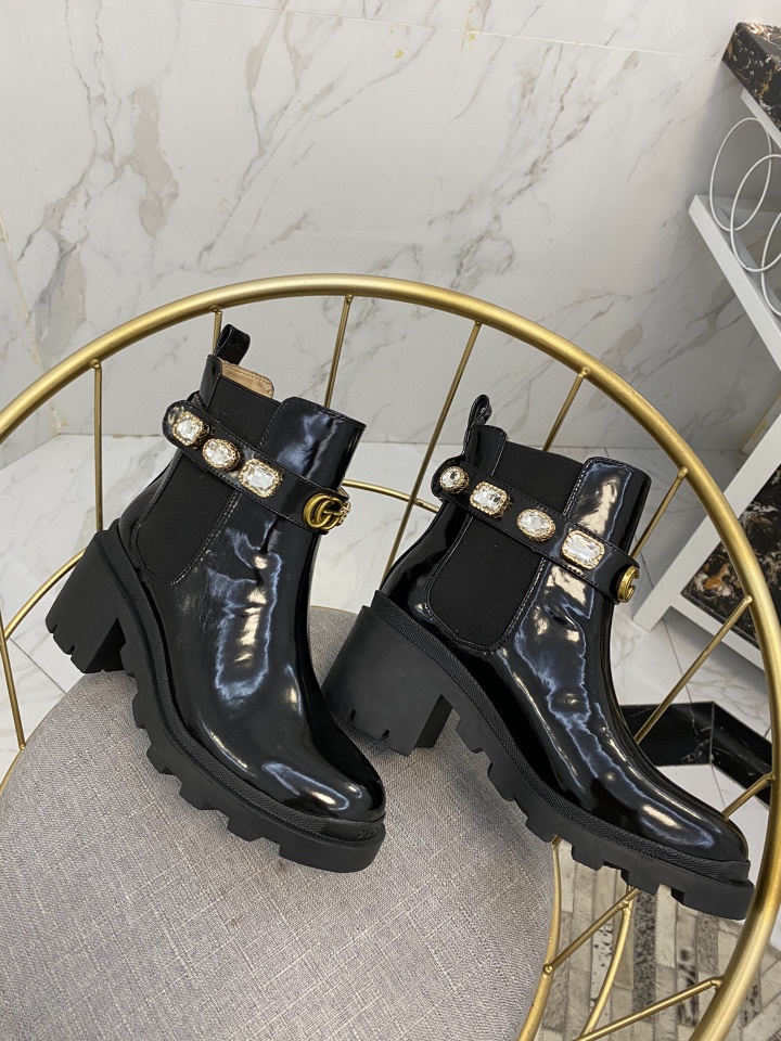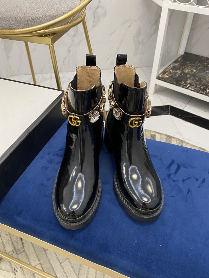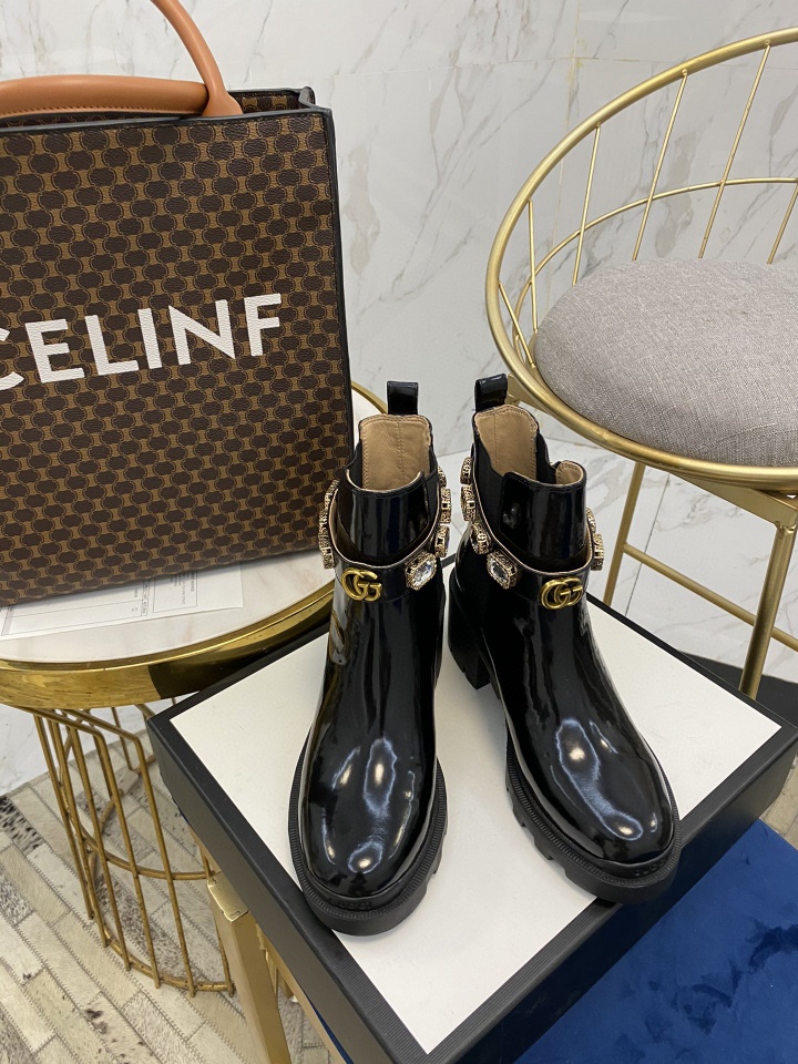 Gucci Women’s Leather Ankle Boots With Strap Black 550036 Dks00 1000