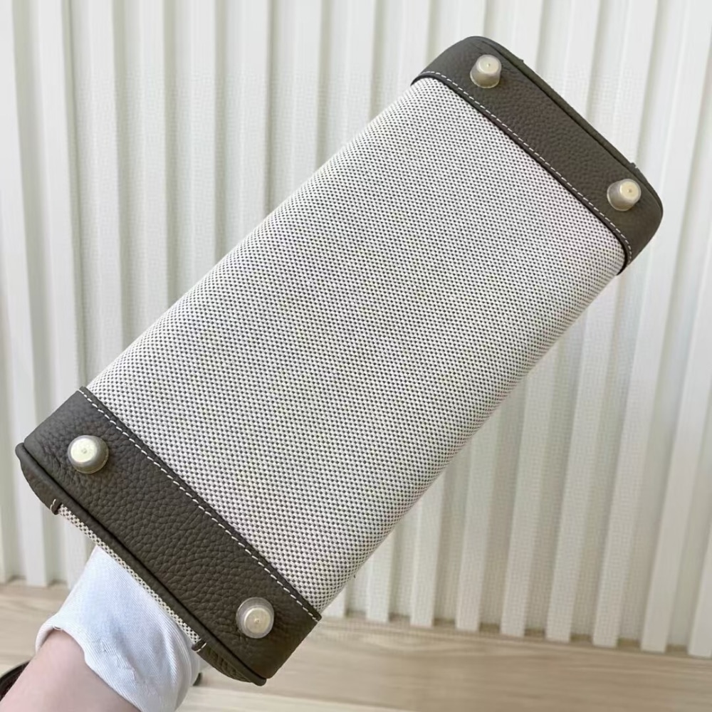 HERMES BIRKIN 25 BI-MATERIAL GOLD TONED HARDWARE GREY 25CM