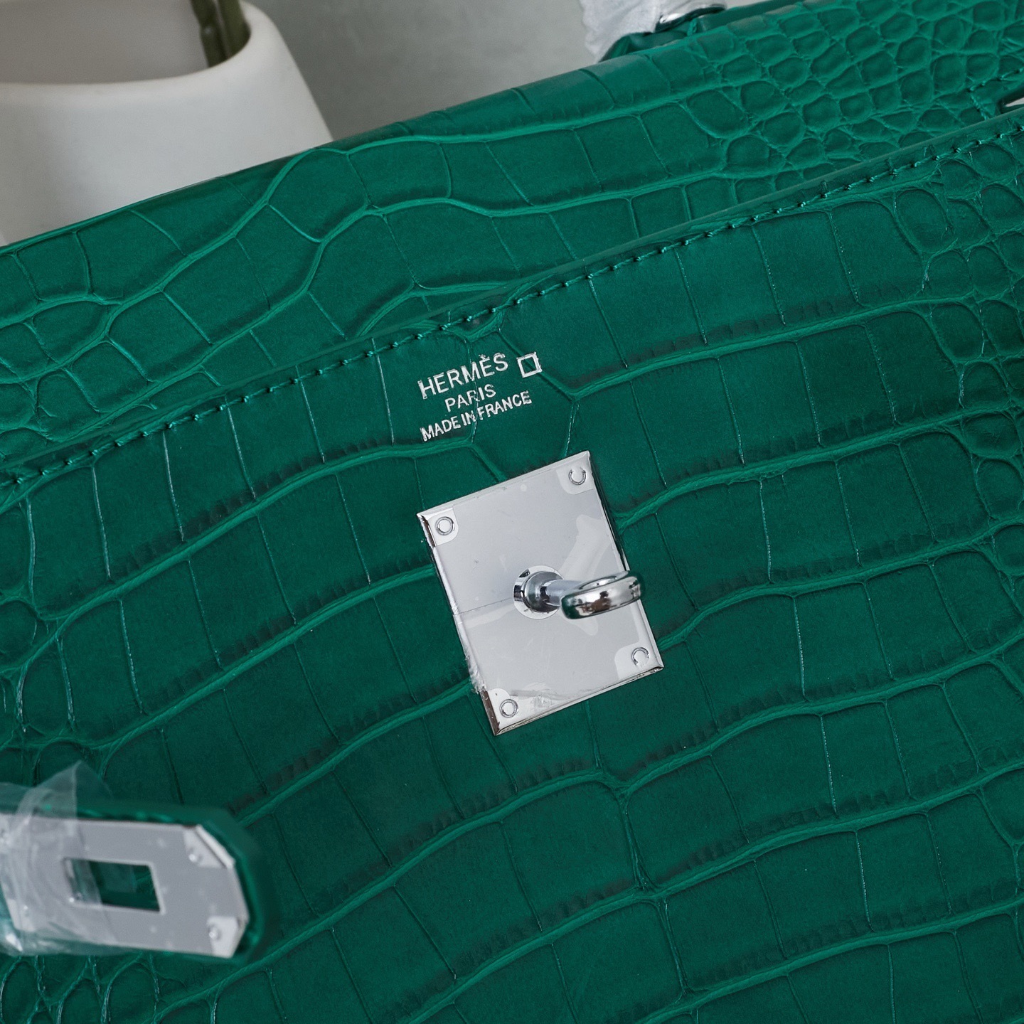 Hermes Kelly 25 Sellier Emeraude Niloticus Lisse Shiny Palladium Hardware
