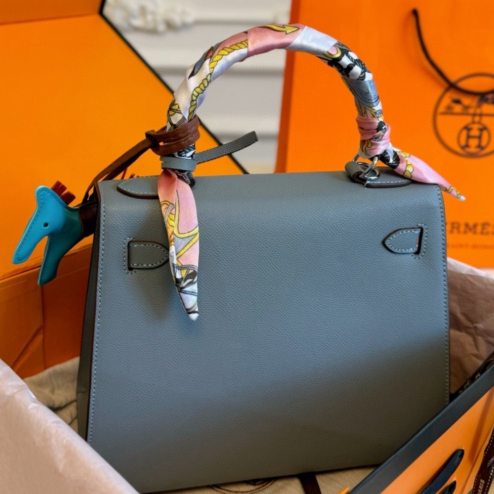 HERMES KELLY EPSOM BLEU CELESTE 28CM