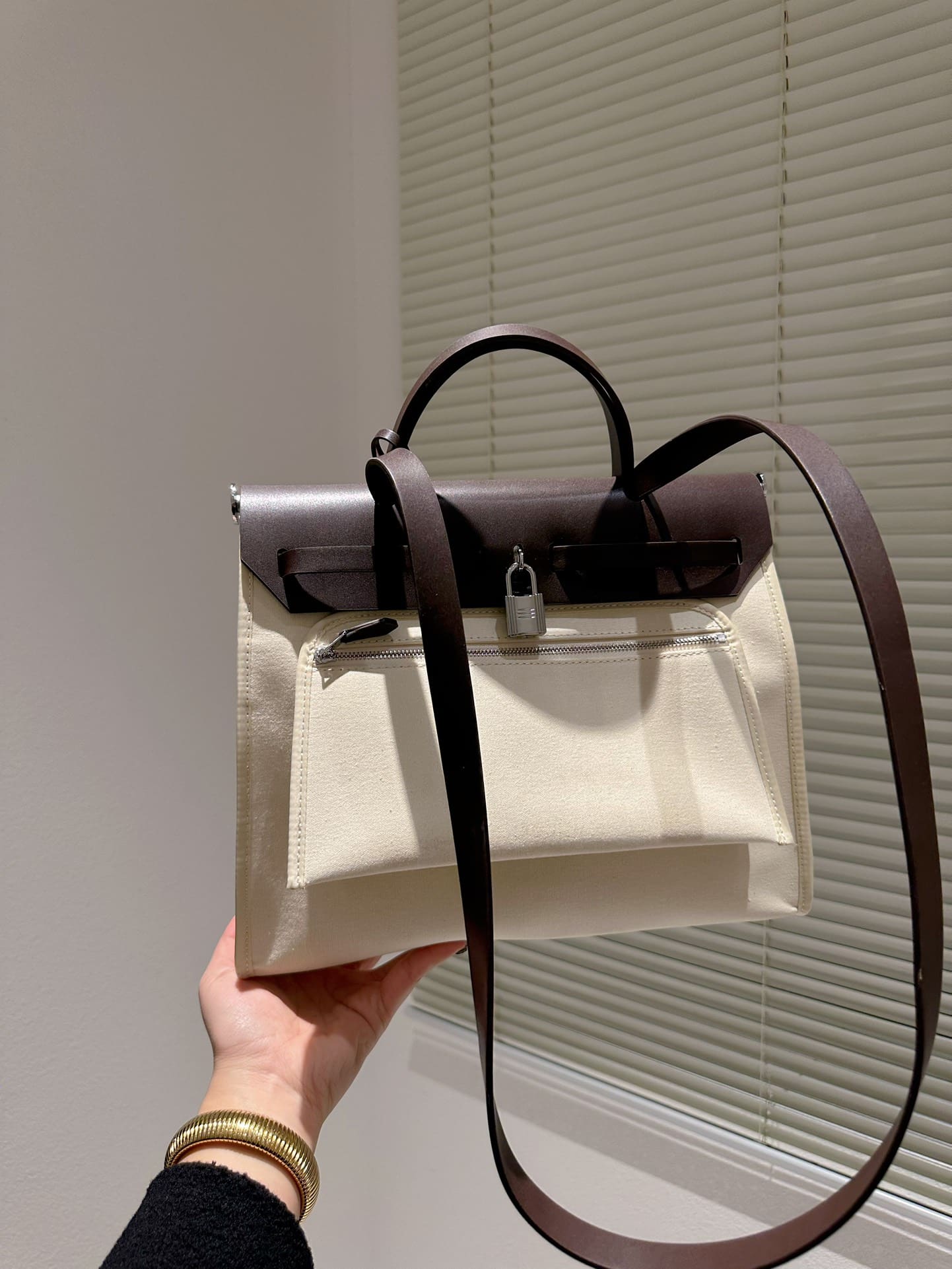 Hermes Vache Hunter Toile Herbag Zip 31 Beige 31Cm