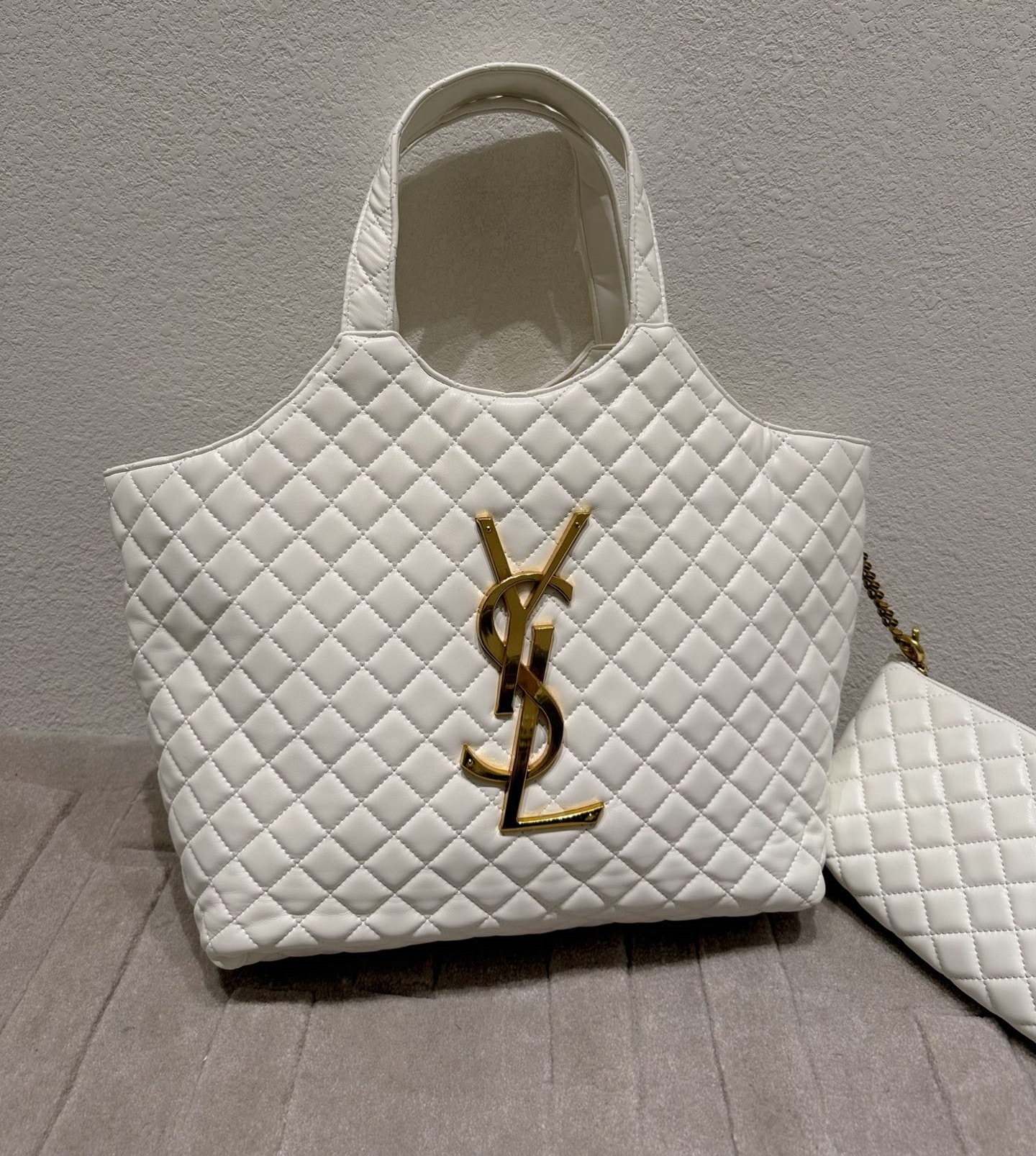 Saint Laurent Icare Shopping Bag In Quilted Lambskin White 40Cm