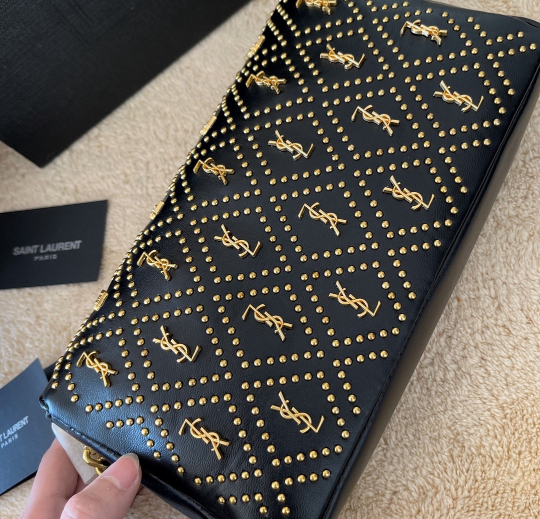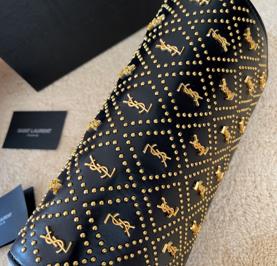 Saint Laurent Kate 99 Studded Shoulder Bag Black 25Cm