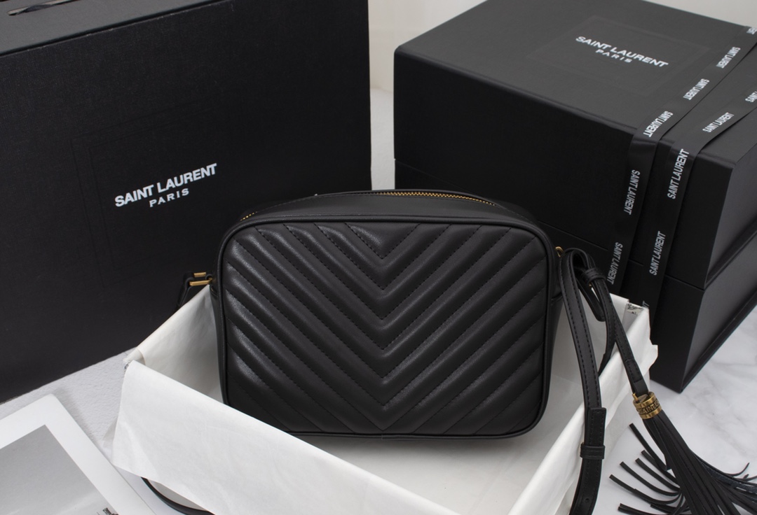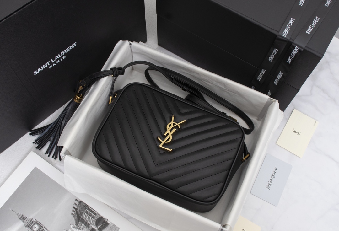 Saint Laurent Lou Camera Bag In Quilted Black Gold Leather 23Cm 612544Dv7071000