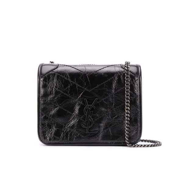 Saint Laurent Niki Vintage Leather Chain Wallet Black 19Cm
