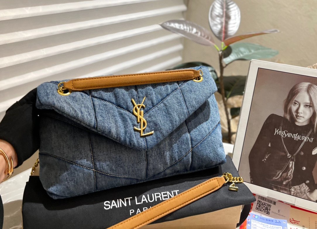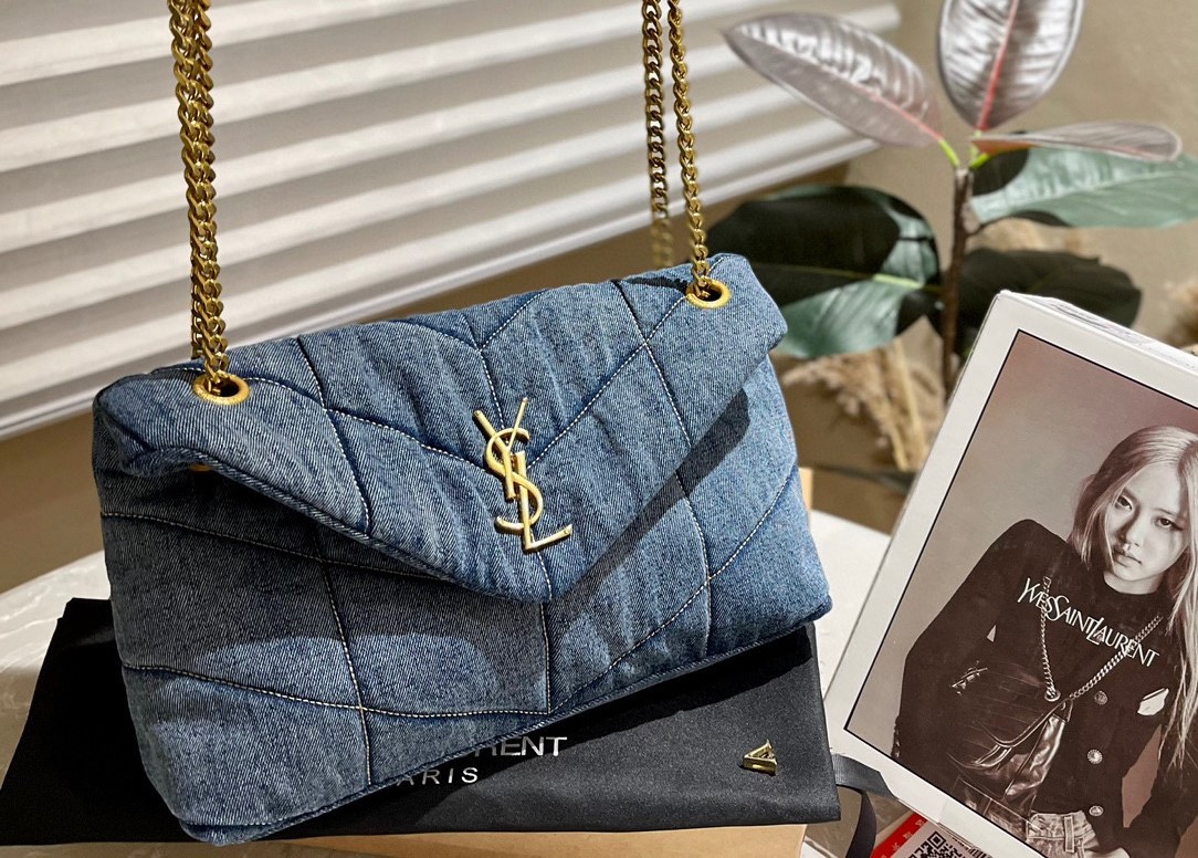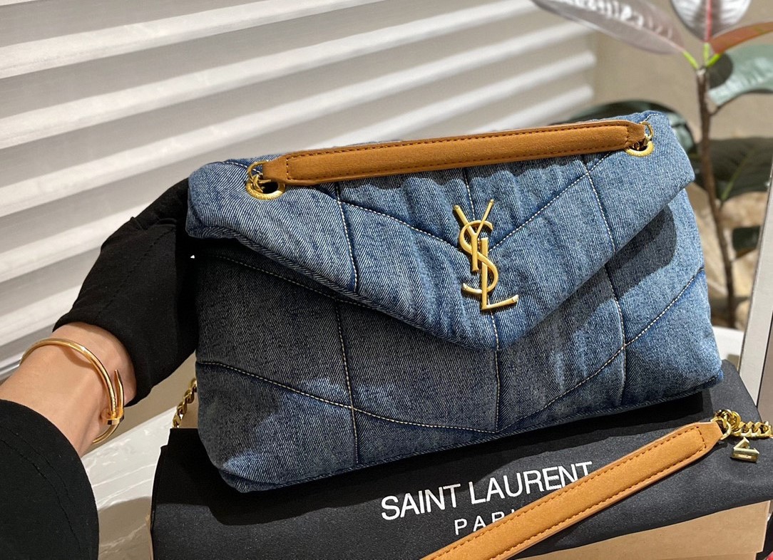 Saint Laurent Puffer Medium In Suede And Denim 30Cm 5774752Pt674575