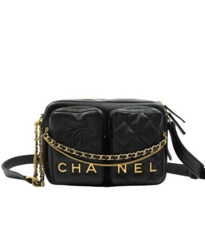 Chanel Quilted Chain Lace Up Combat Boots Black